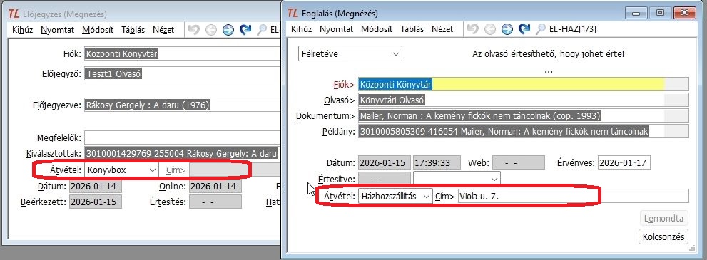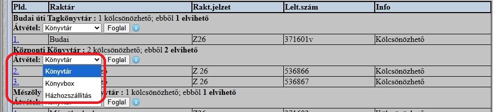 Keres példányt vonalkód alapján, olvasót azonosító alapján,